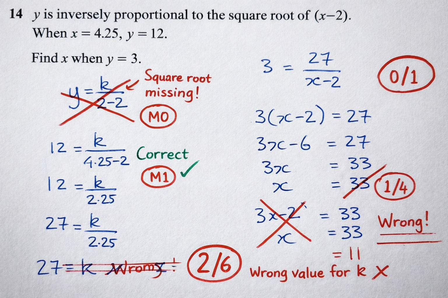 • M marks – for correct method